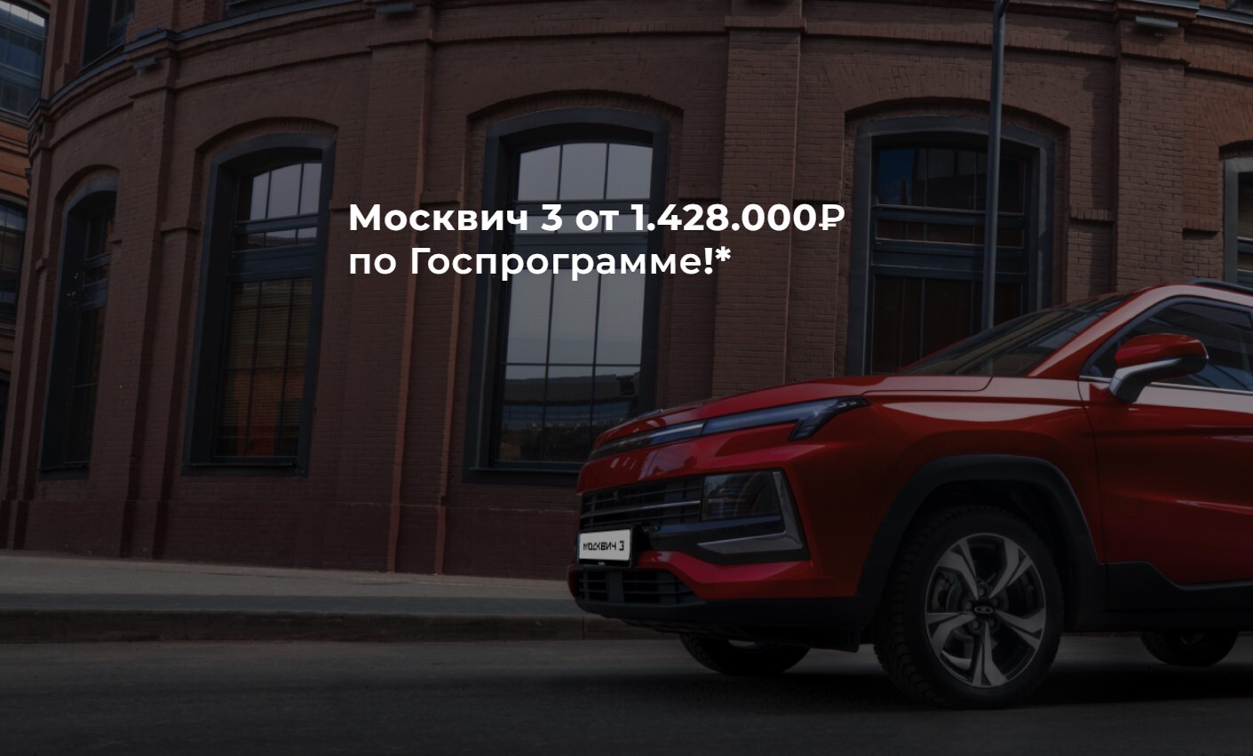 *Указанная в рекламе стоимость – 1.428.000 руб. достигается при покупке а/м Москвич 3 2025 года производства в комплектации «Стандарт плюс» с МКПП РМЦП - 1.920.000 руб. при условии суммирования скидок: