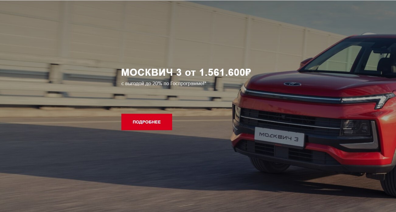 *Стоимость автомобиля Москвич 3 в комплектации Стандарт Плюс, 1,5Т МКП6 с телематикой MY26, 2025 года производства с учетом выгоды в размере 20% от стоимости автомобиля в рамках Государственной программы автокредитования (Пост. Правительства РФ № 364 от 16.04.2015 (с изменениями и дополнениями)) при покупке гражданами РФ, которые являются работниками медицинских организаций государственной системы здравоохранения, либо работниками государственных и муниципальных образовательных организаций, либо гражданами РФ, проходящими военную службу по контракту или военную службу по призыву в соответствии с Федеральным законом «О воинской обязанности и военной службе», либо являются супругом (супругой), детьми или родителями, проживающими совместно с гражданами РФ, проходящими военную службу по контракту или военную службу по призыву в соответствии с Федеральным законом «О воинской обязанности и военной службе», либо являются инвалидами. Прочие требования к гражданам для соответствия госпрограмме зафиксированы в актуальной версии Постановления №364 от 16.04.2015 года. Предложение ограничено лимитами субсидии от Минпромторга РФ. Не является офертой и распространяется на новые автомобили Москвич 3, произведенные в 2025г. (ЭПТС не ранее 01.12.2025) и 2026г., стоимостью не более 2 миллионов рублей. Подробности у официального дилера Москвич - ООО "Луидор-Казань" по телефону 88002002402 и у банков-участников программы автокредитования с государственной поддержкой. Предложение действует с 17.03.2026 г. по 31.03.2026 г. АО МАЗ «Москвич» вправе изменить сроки и условия предложения. Оценивайте свои финансовые возможности и риски